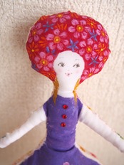 白、またはキナリの布を手縫いし、綿を入れて人形の形を作り、そこへ直接アクリル絵の具で着色しています。
