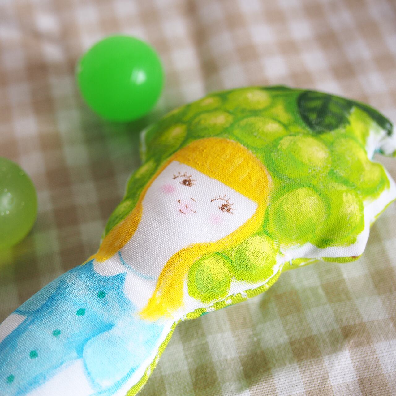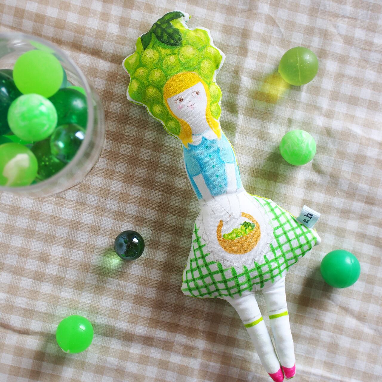 白、またはキナリの布を手縫いし、綿を入れて人形の形を作り、そこへ直接アクリル絵の具で着色しています。