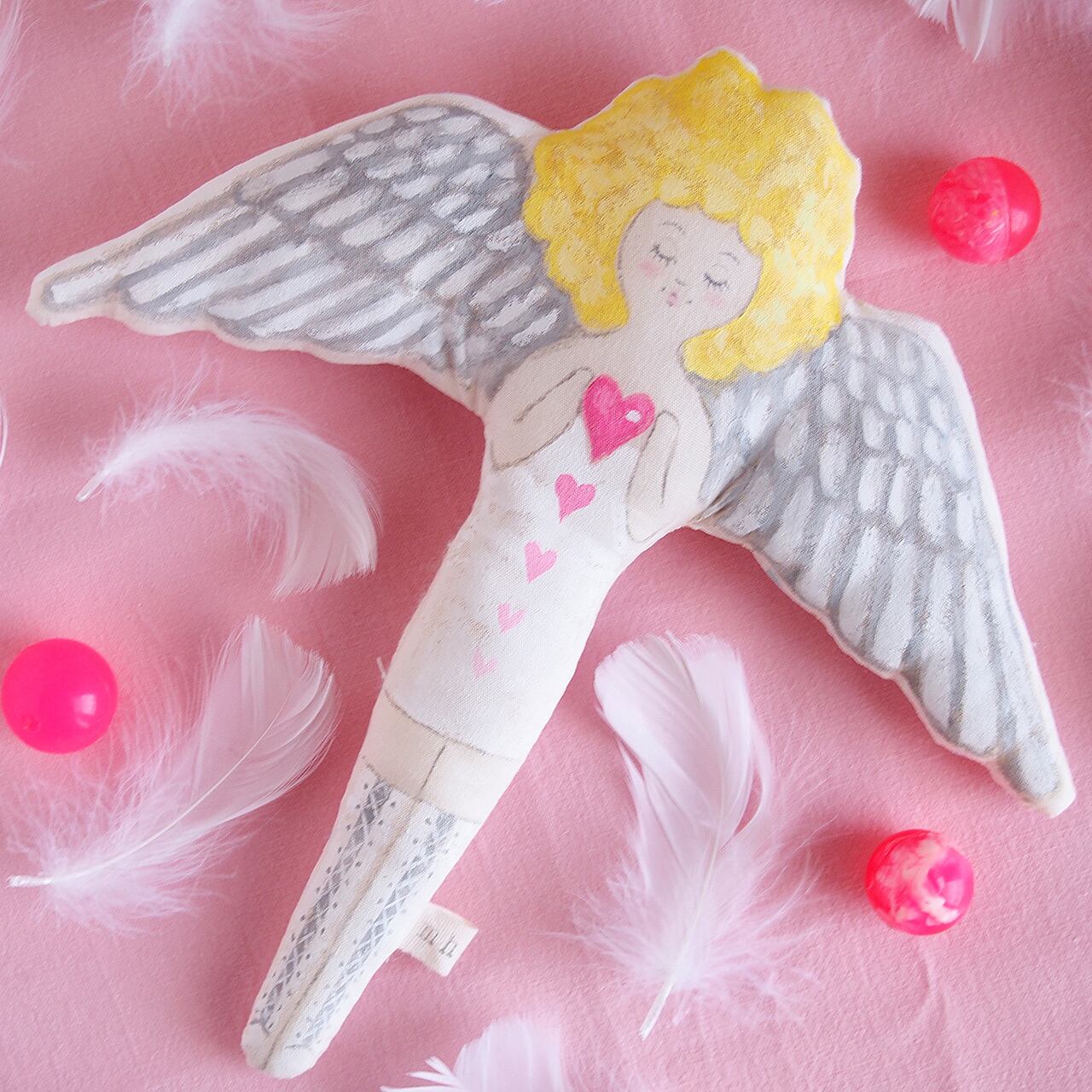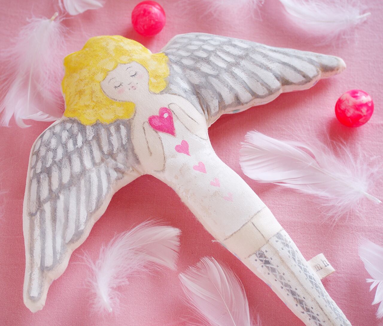大きな翼を広げて、ハートを胸に抱いたキューピッド。