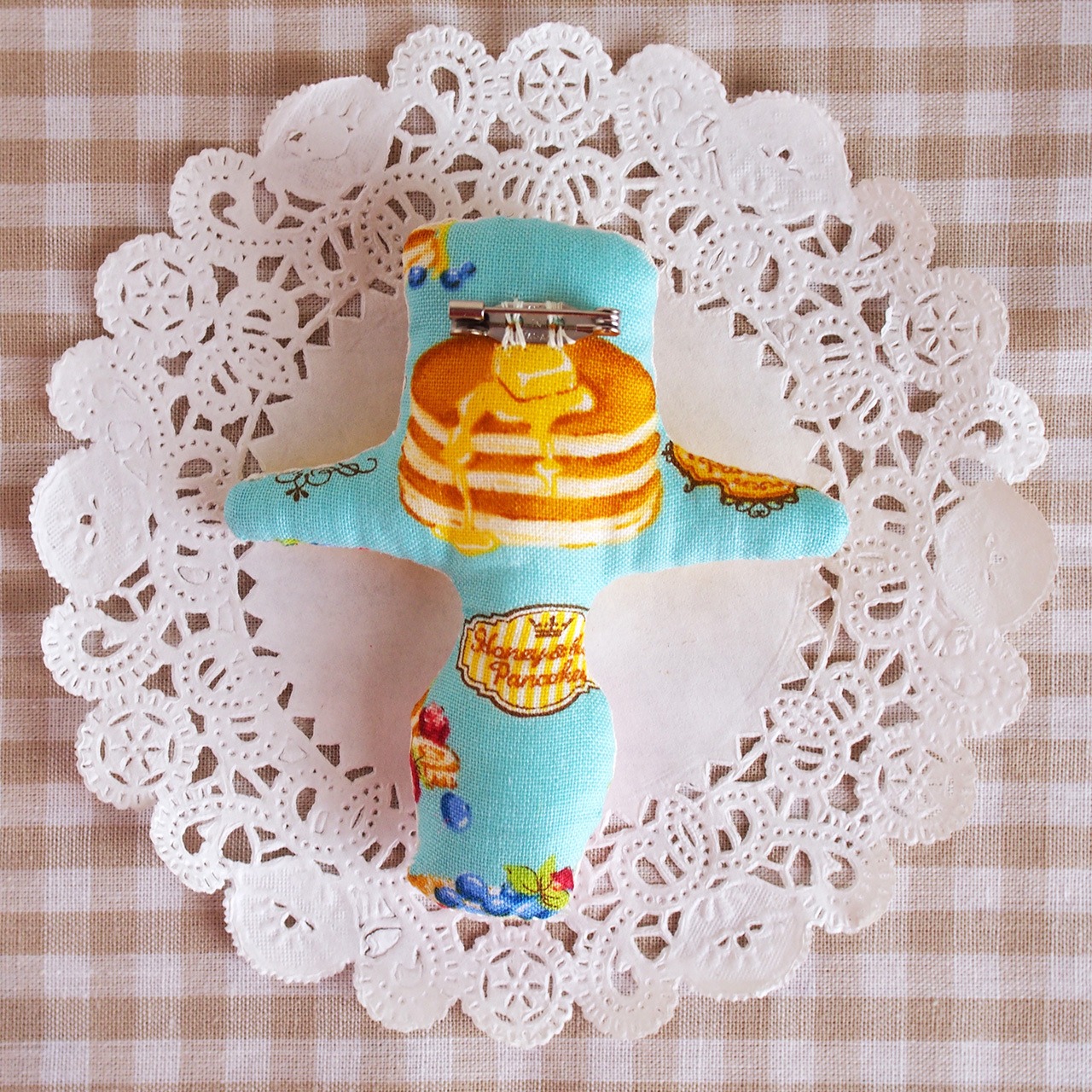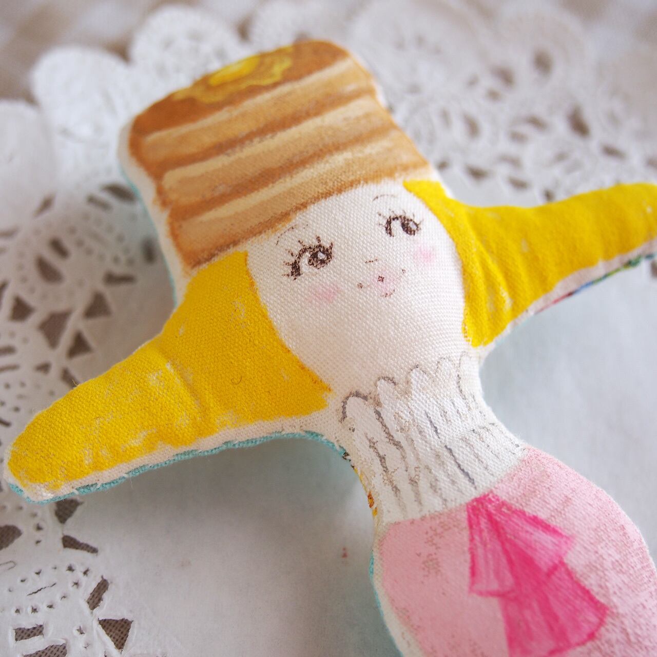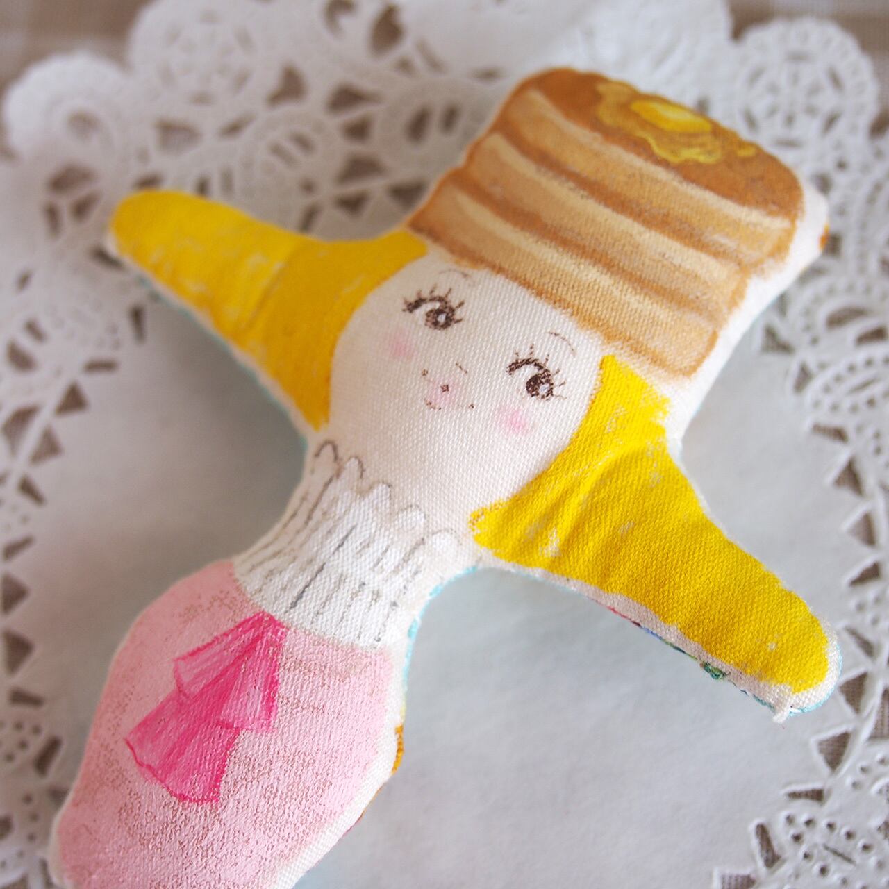 白、またはキナリの布を手縫いし、綿を入れて人形の形を作り、そこへ直接アクリル絵の具で着色しています。