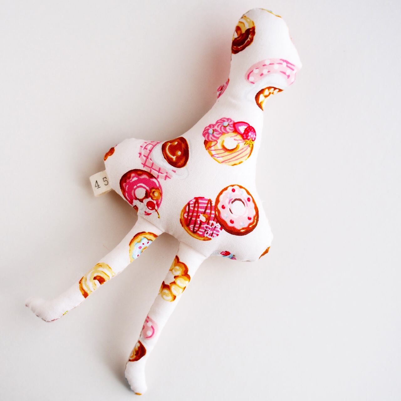 白、またはキナリの布を手縫いし、綿を入れて人形の形を作り、そこへ直接アクリル絵の具で着色しています。