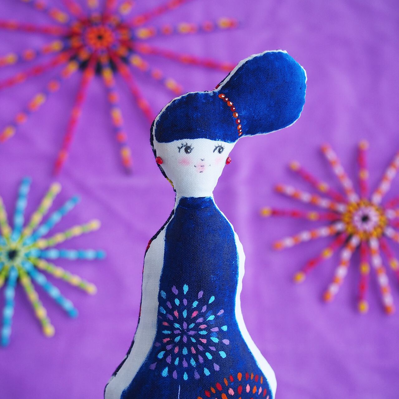 人形の形のキャンバスに絵を描くような気持ちで、心を込めて制作しています。