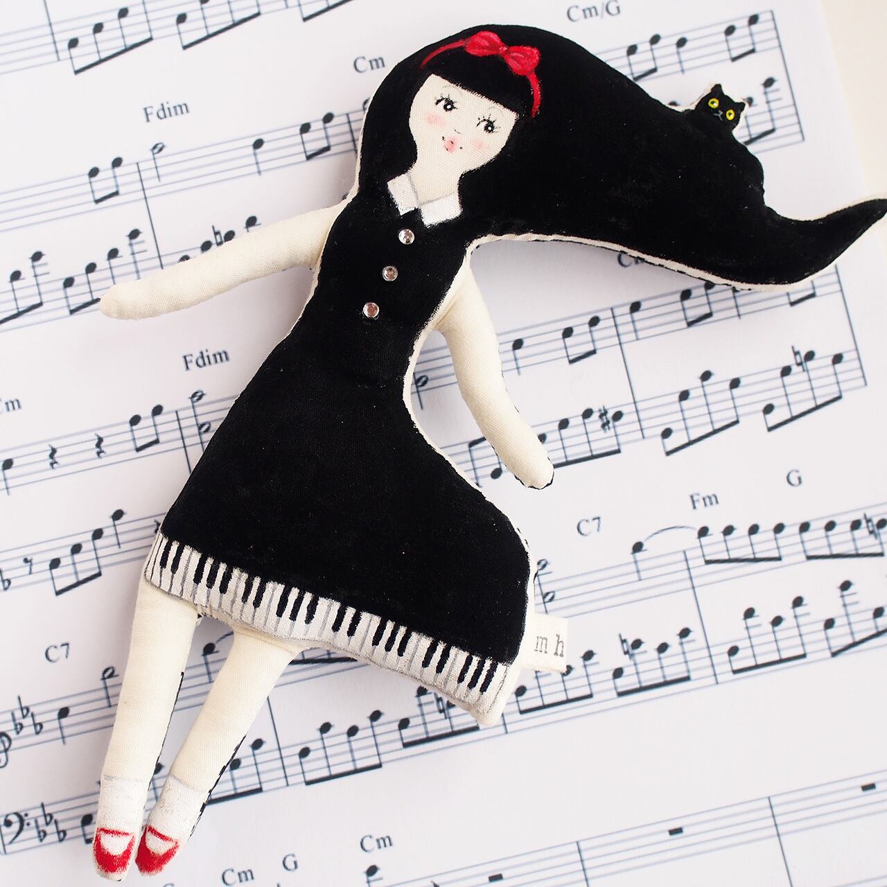 風になびく髪の上に、こっそり黒猫さんが乗っかっています。