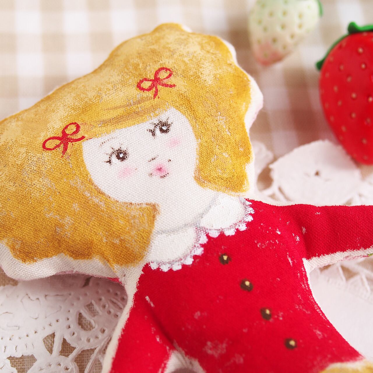 人形の形のキャンバスに絵を描くような気持ちで、心を込めて制作しています。