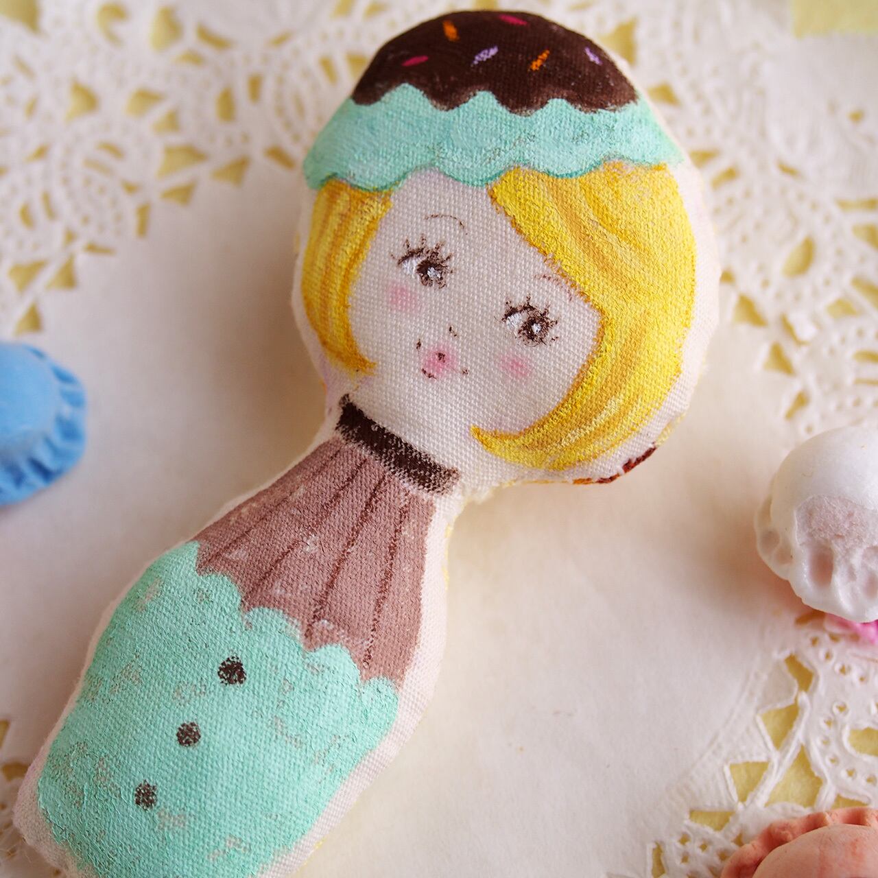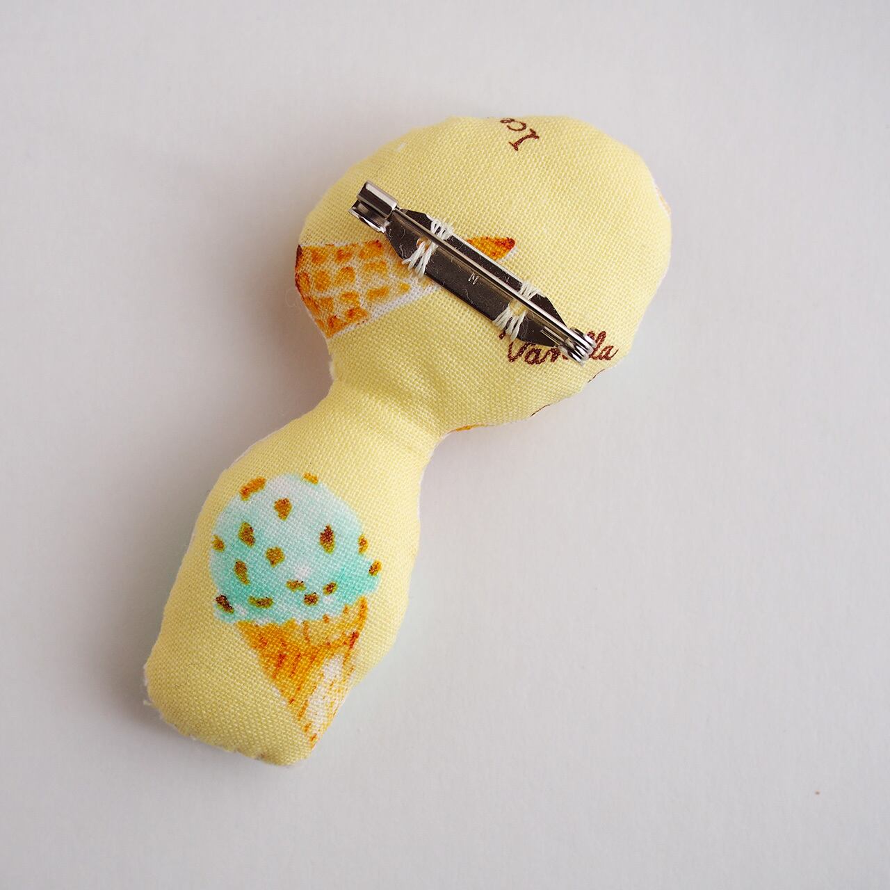 チョコミントアイスをかぶった女の子のブローチです。