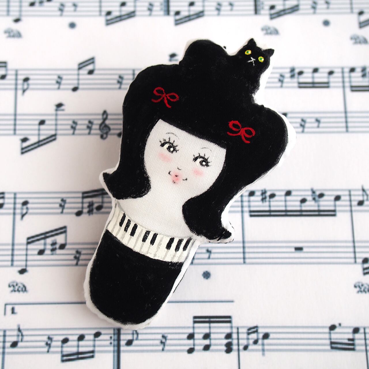 頭に黒猫を乗せた、ピアノのイメージの女の子。