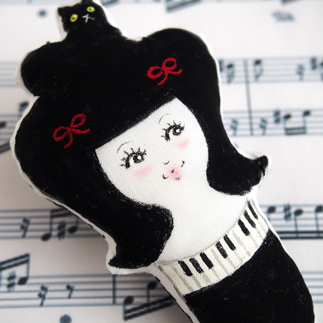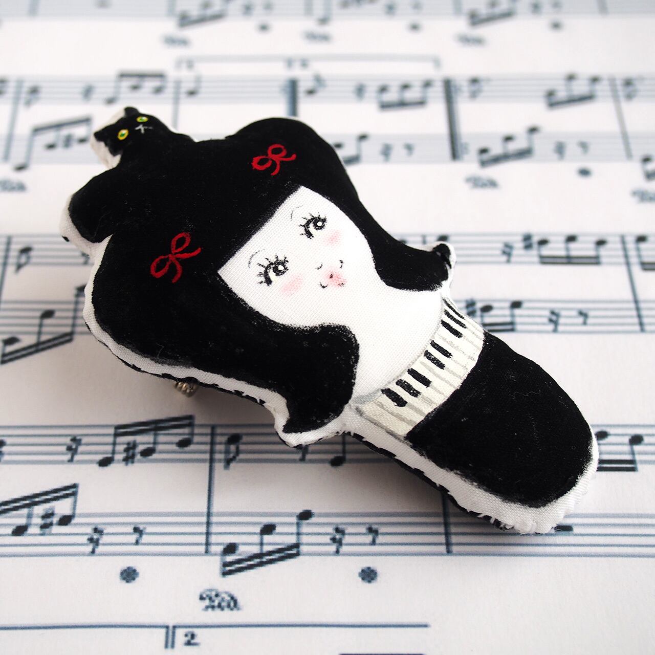 ピアノ女子のブローチ(赤いリボン)