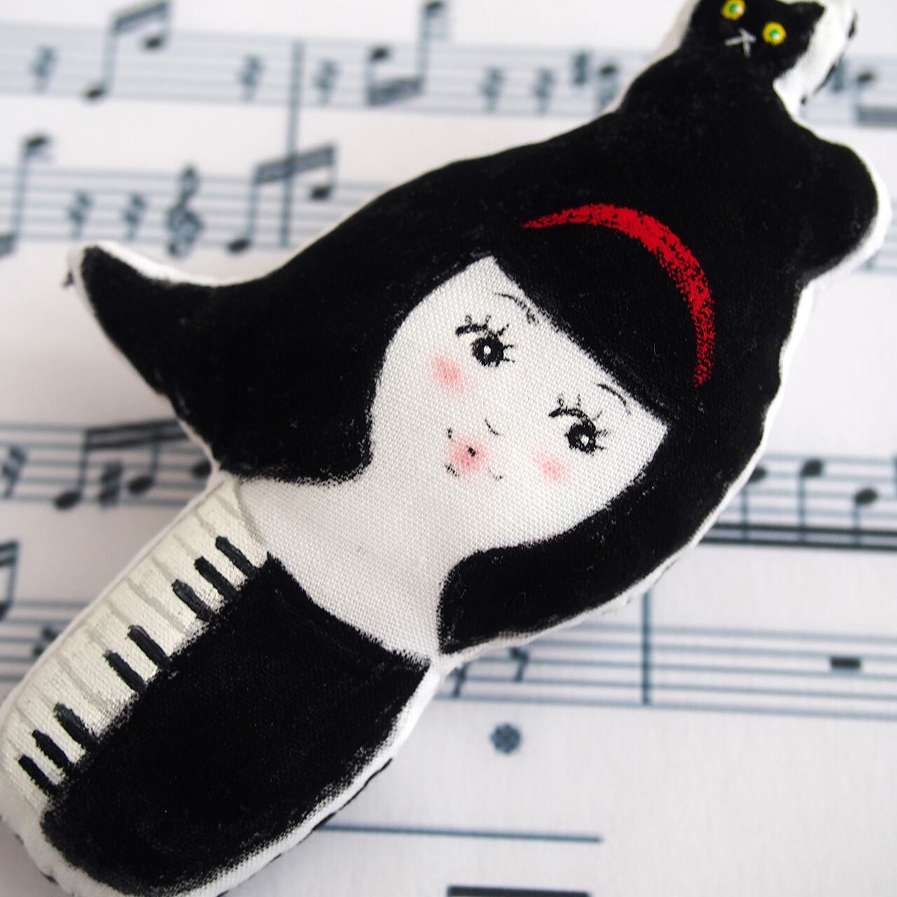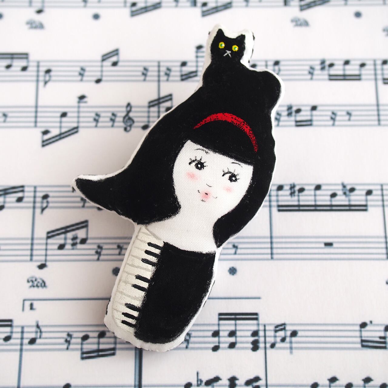 以前通常サイズで作ったピアノ姉妹のブローチバージョンです。
