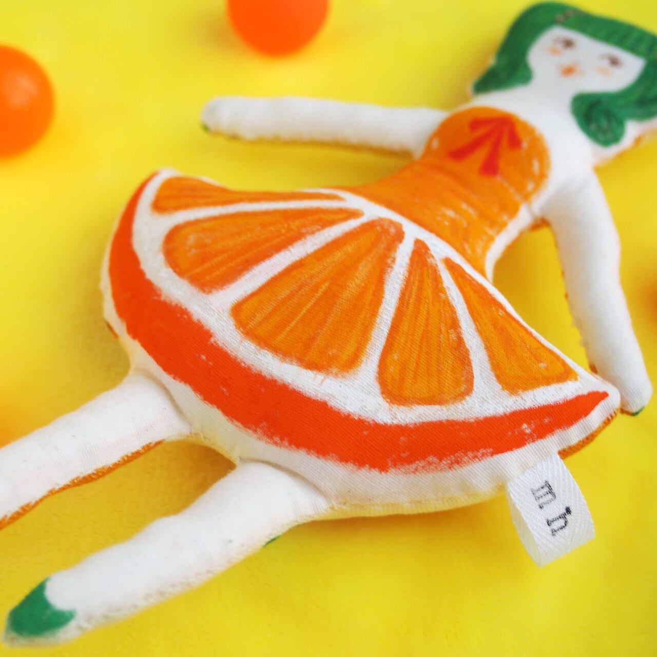 オレンジのワンピースを着た女の子。
