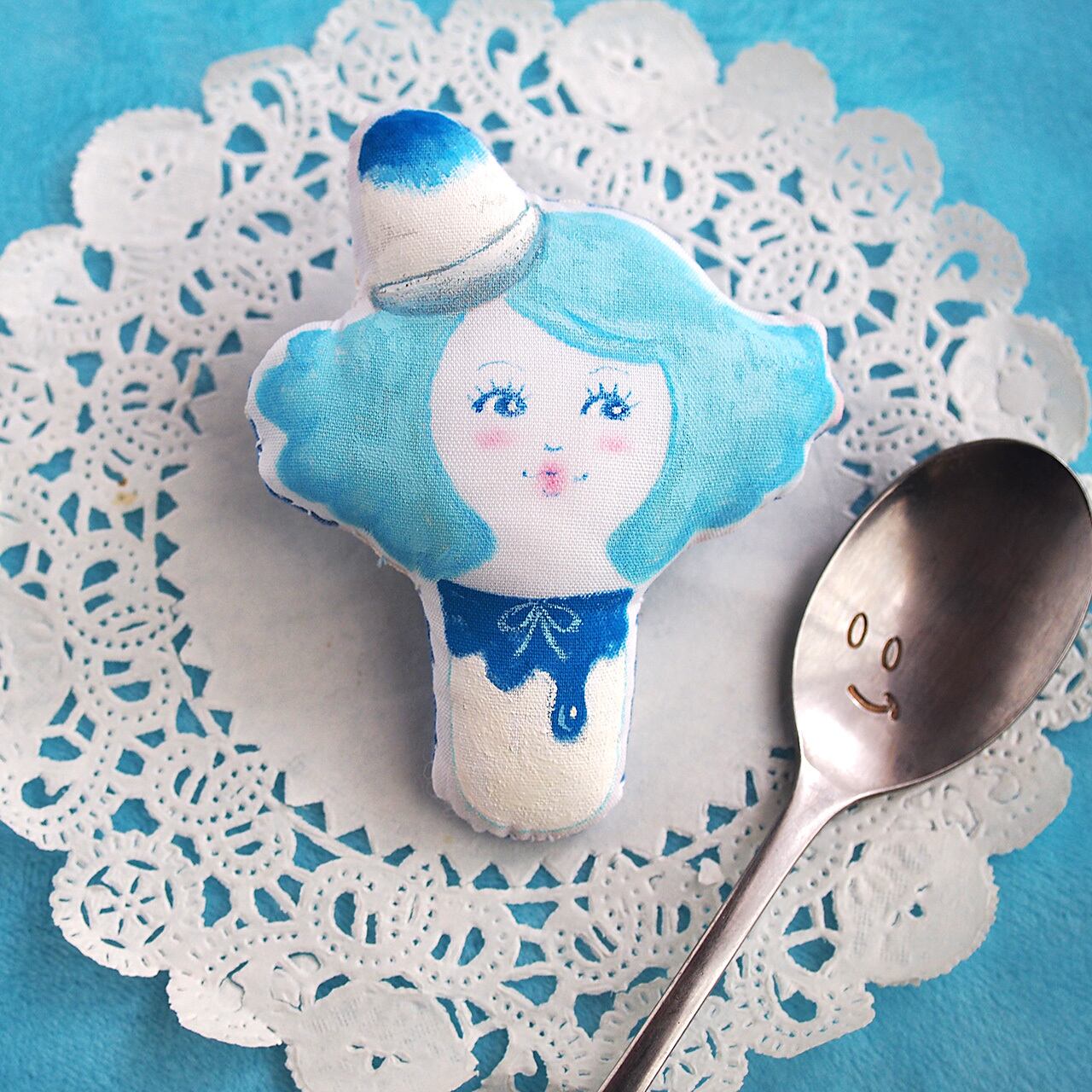 かき氷の帽子をかぶった女の子のブローチです。