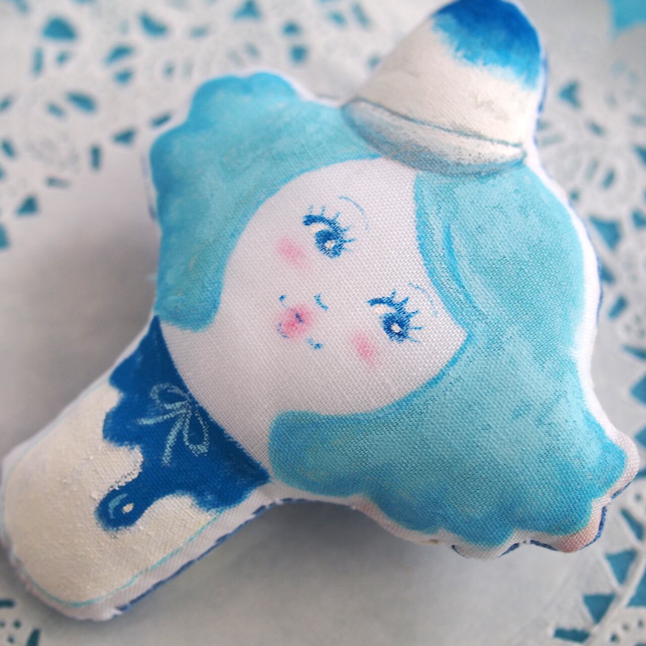 人形の形のキャンバスに絵を描くような気持ちで、心を込めて制作しています。
