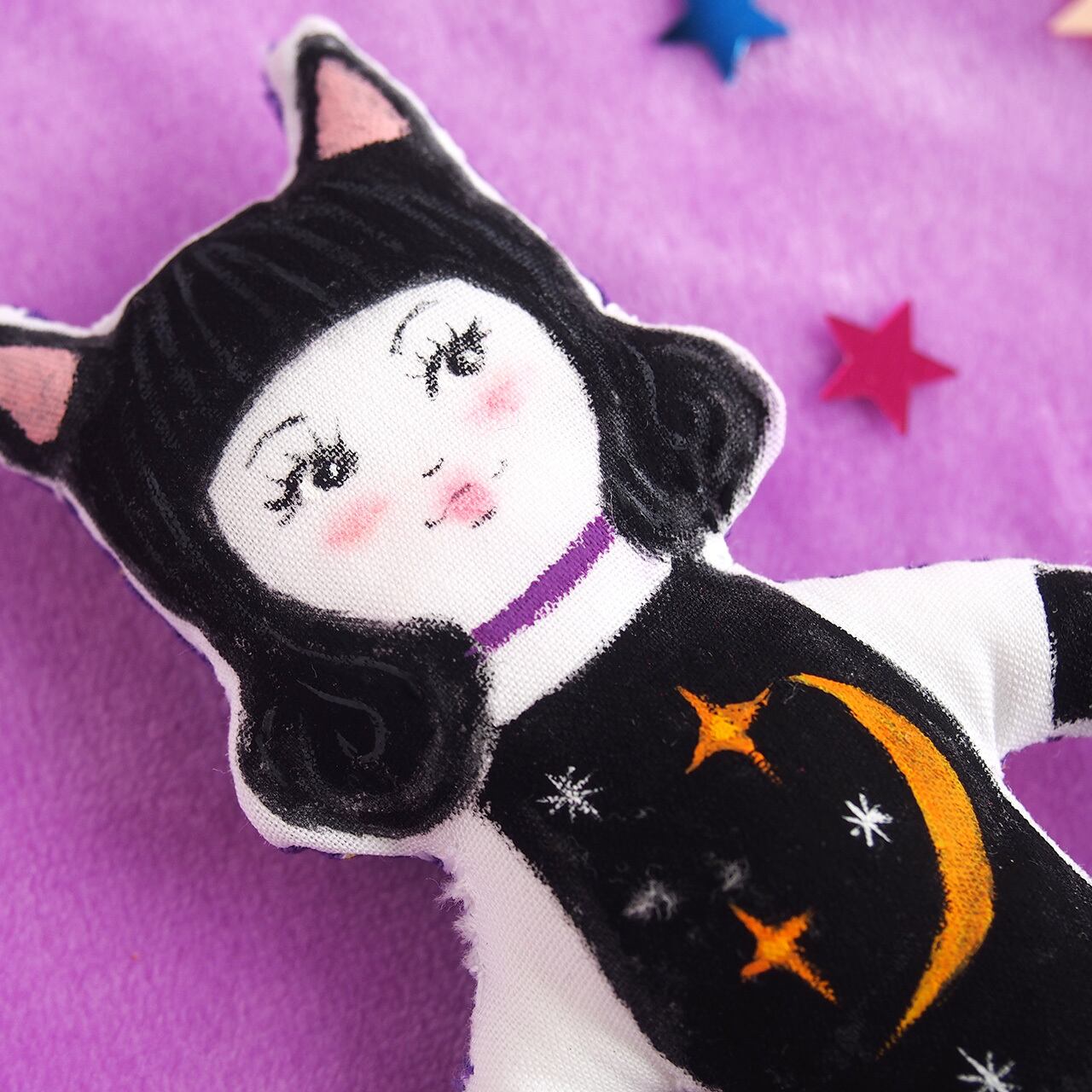 白、またはキナリの布を手縫いし、綿を入れて人形の形を作り、そこへ直接アクリル絵の具で着色しています。