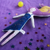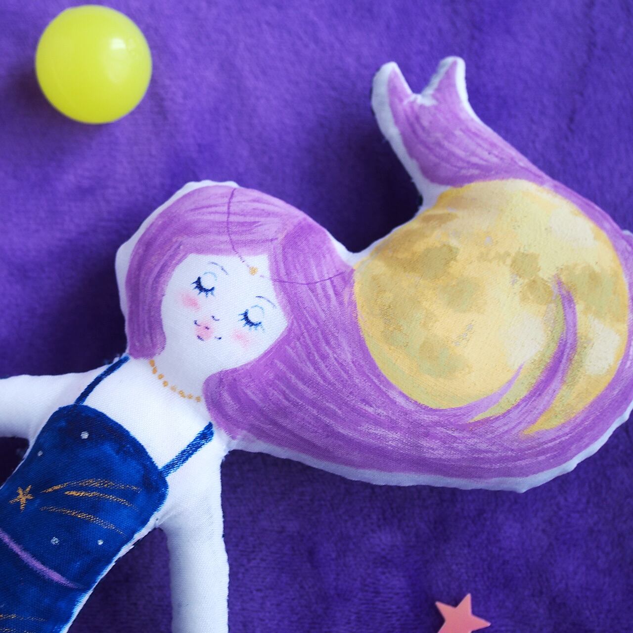 大きな月が髪に絡まり、ワンピースには星が流れています。