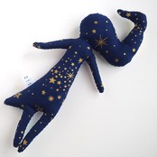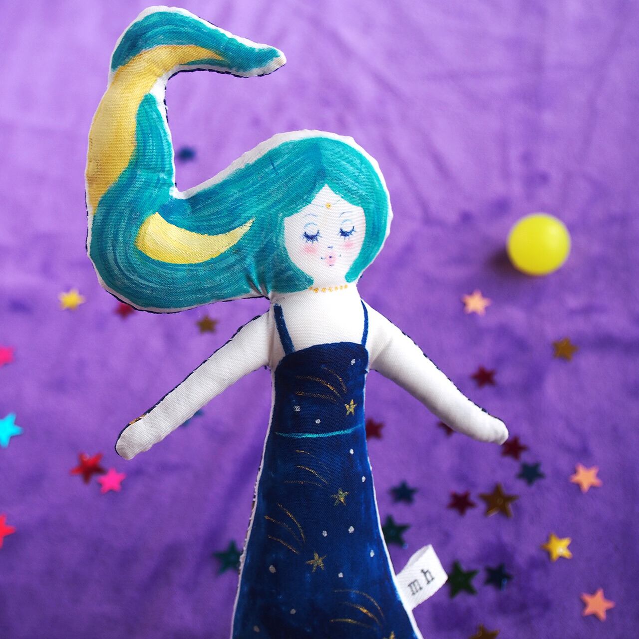 大きな三日月が髪に絡まり、ワンピースには星が流れています。