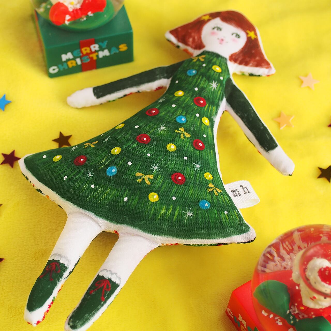 クリスマスツリーのワンピースを着た女の子。