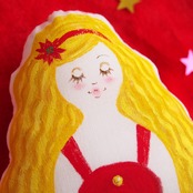 白、またはキナリの布を手縫いし、綿を入れて人形の形を作り、そこへ直接アクリル絵の具で着色しています。