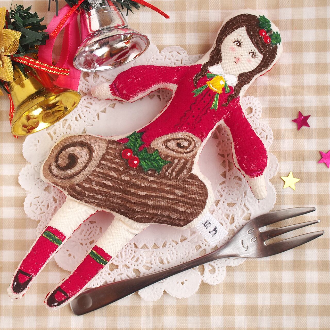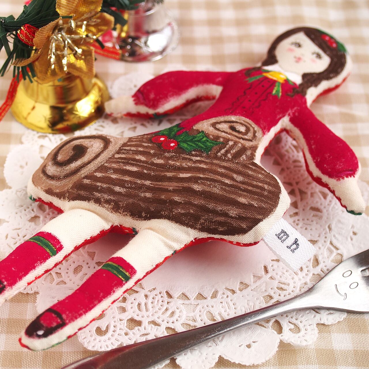 クリスマス定番のロールケーキ、ブッシュドノエルのイメージの女の子。
