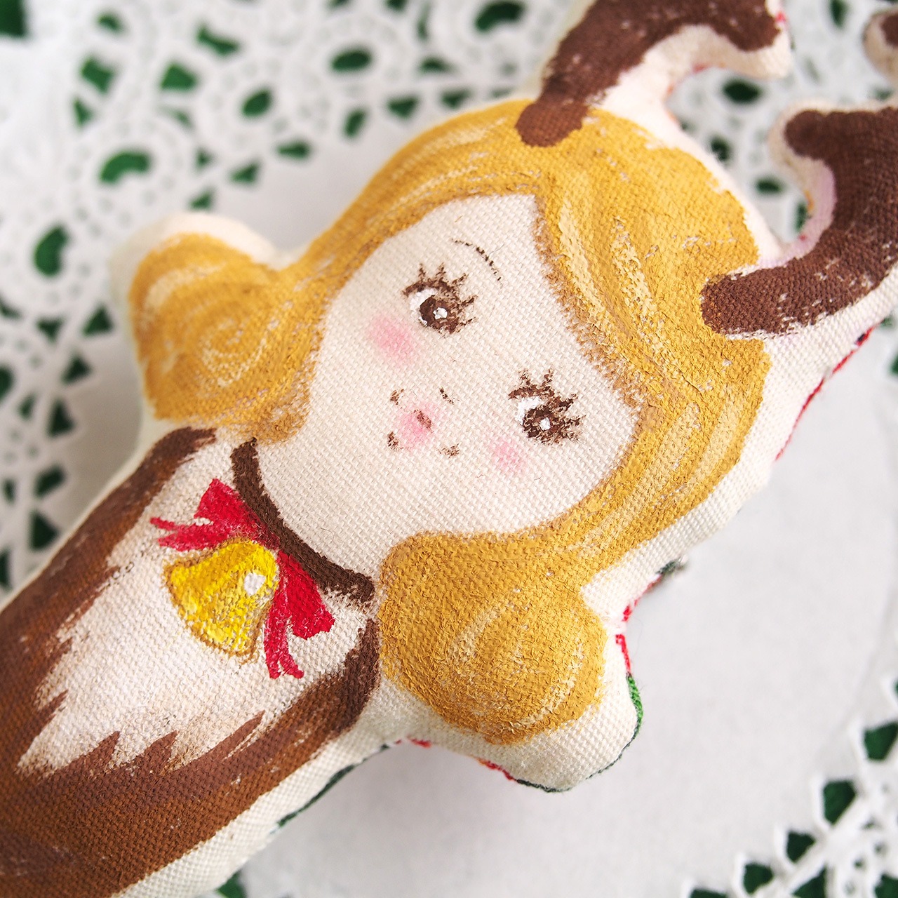 頭には大きなツノ、首元にはベル、お洋服もトナカイ風のお嬢さん。