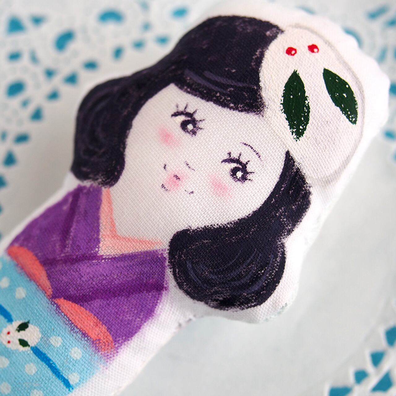 人形の形のキャンバスに絵を描くような気持ちで、心を込めて制作しています。