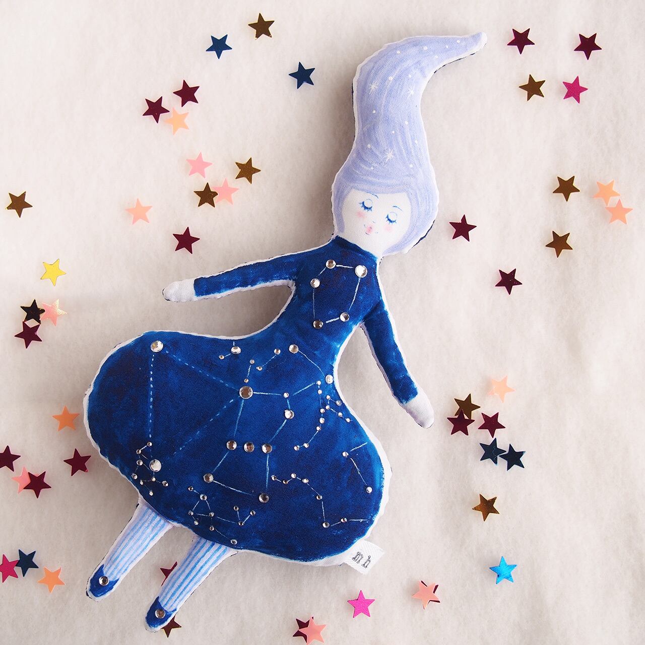 星座が輝く冬の夜空のワンピースを着た、神秘的な女の子。