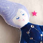 白、またはキナリの布を手縫いし、綿を入れて人形の形を作り、そこへ直接アクリル絵の具で着色しています。
