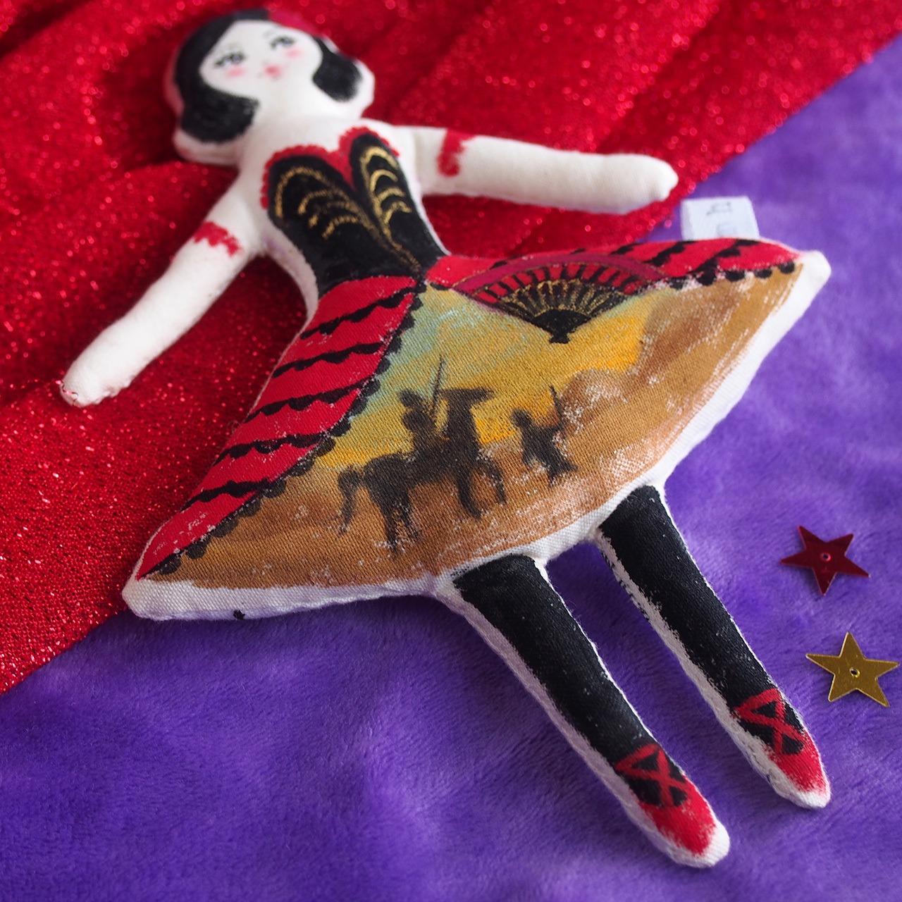 チュチュに、ドン・キホーテのイメージと小物の扇子を描き入れました。