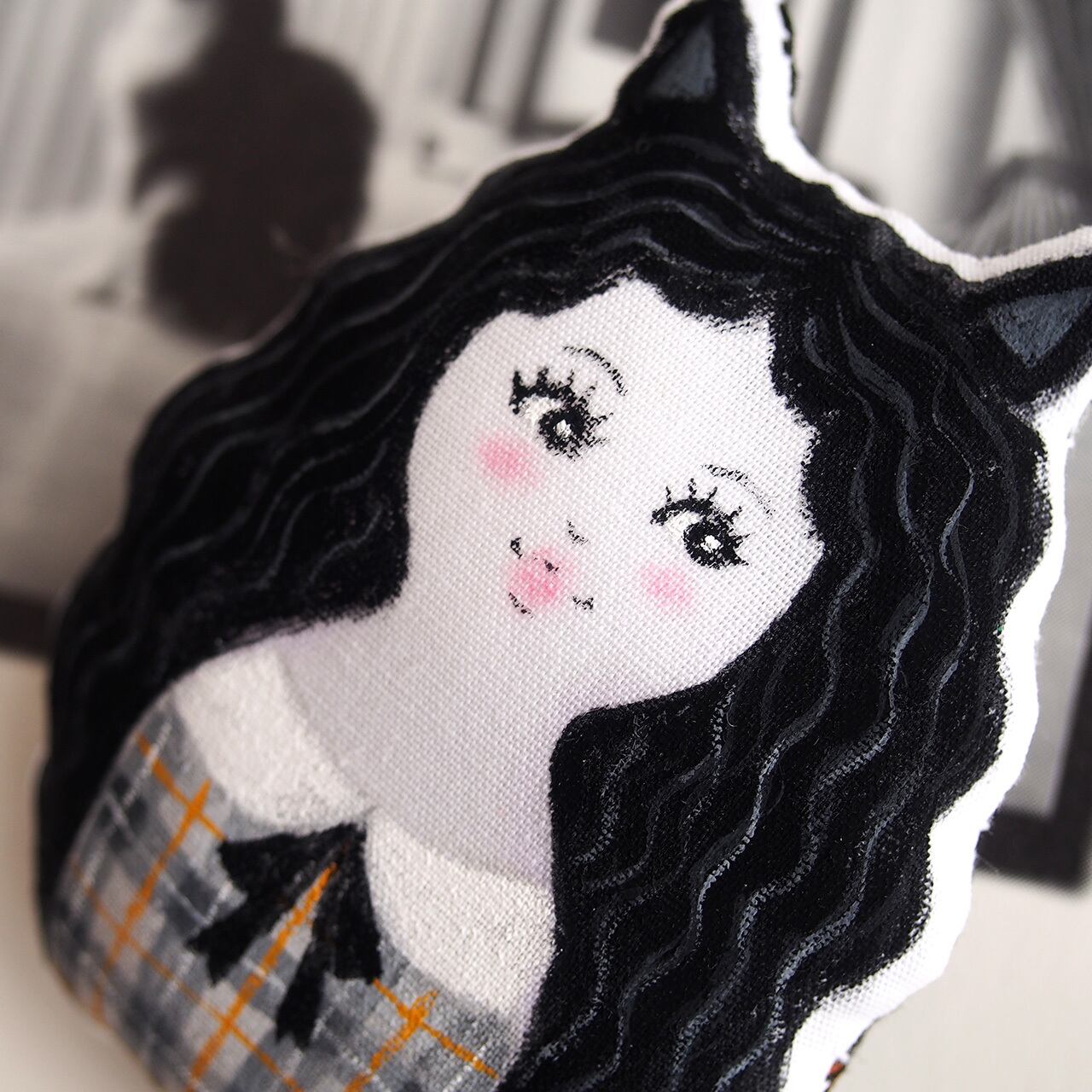 黒髪が美しい、黒猫・長毛種のイメージの女の子ブローチです。
