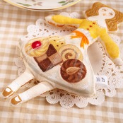 白、またはキナリの布を手縫いし、綿を入れて人形の形を作り、そこへ直接アクリル絵の具で着色しています。