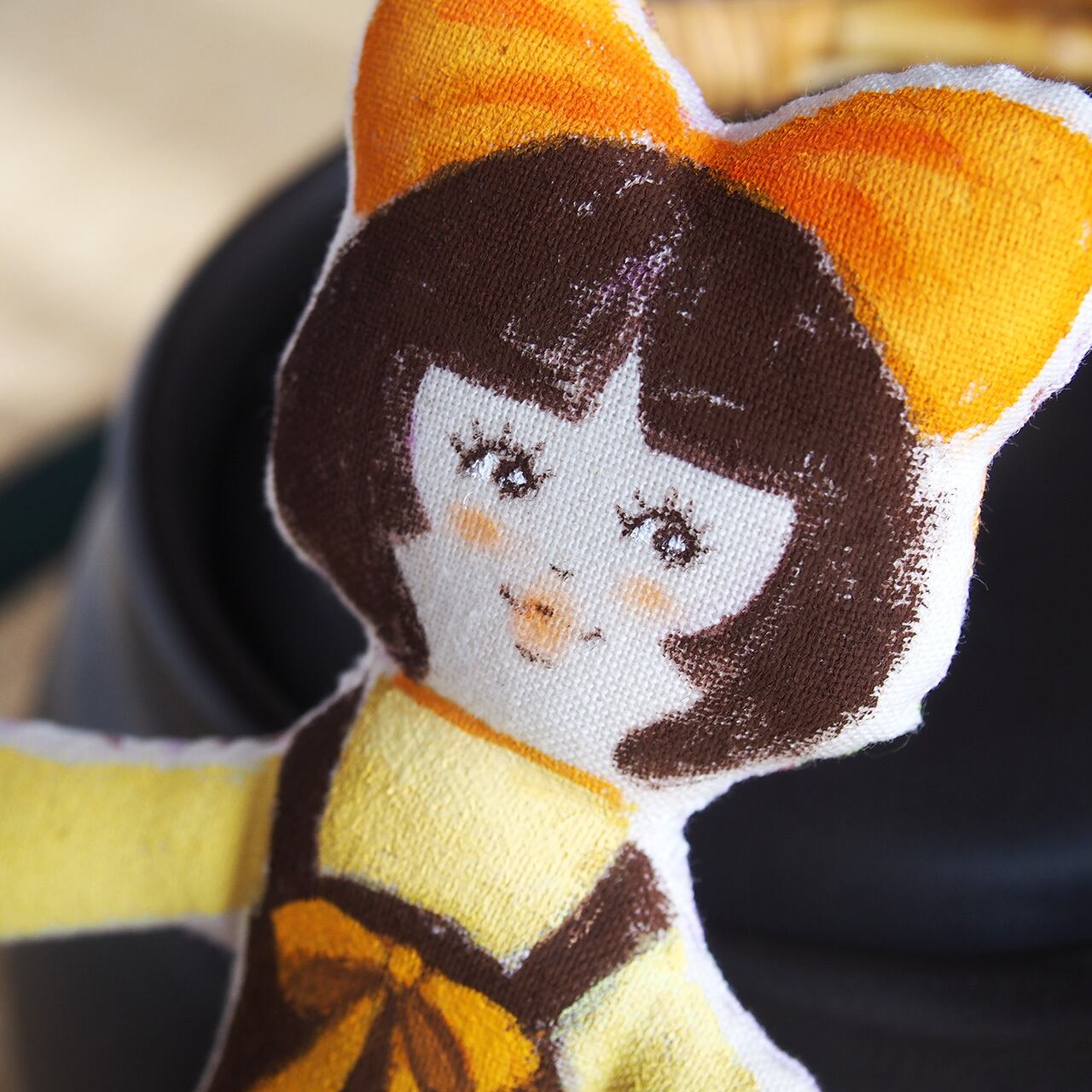 人形の形のキャンバスに絵を描くような気持ちで、心を込めて制作しています。