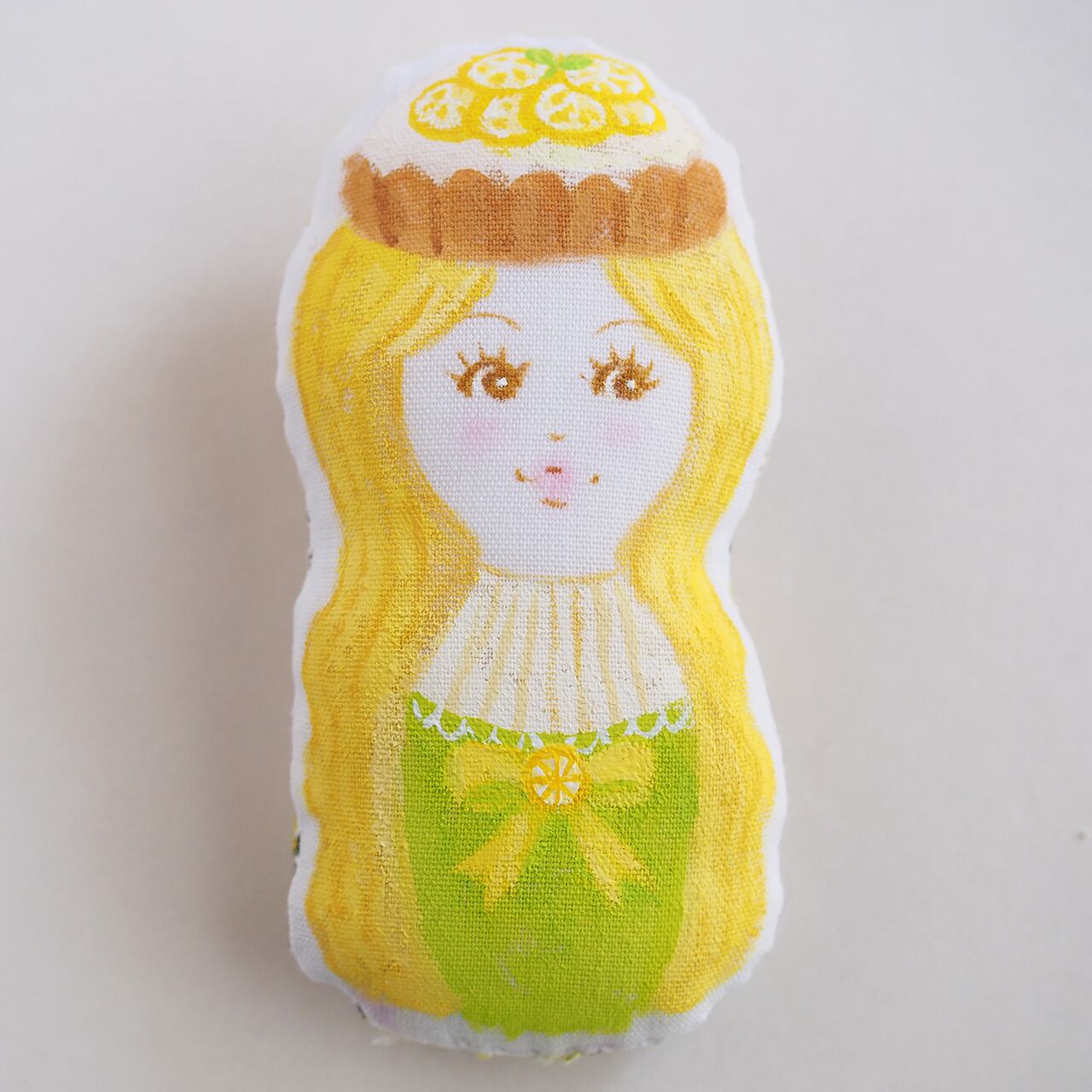さっぱり爽やかなレモンタルトをかぶった女の子のブローチです。