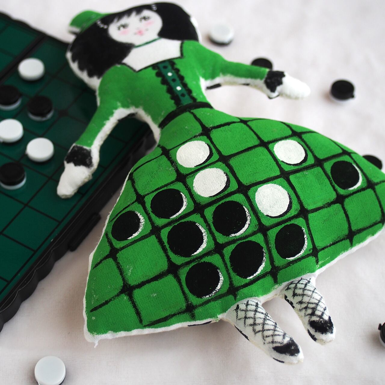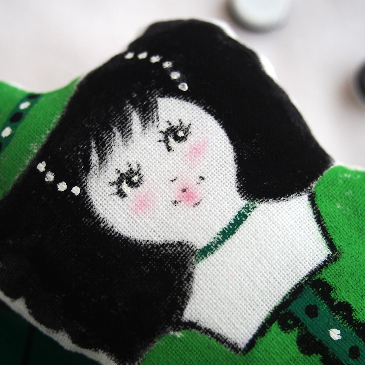 人形の形のキャンバスに絵を描くような気持ちで、心を込めて制作しています。