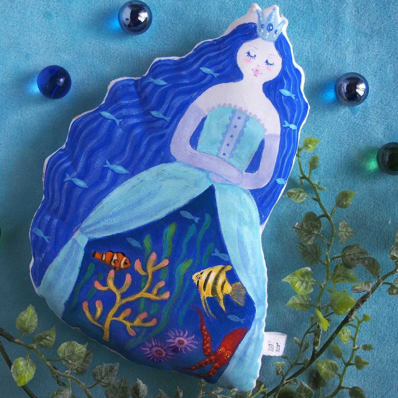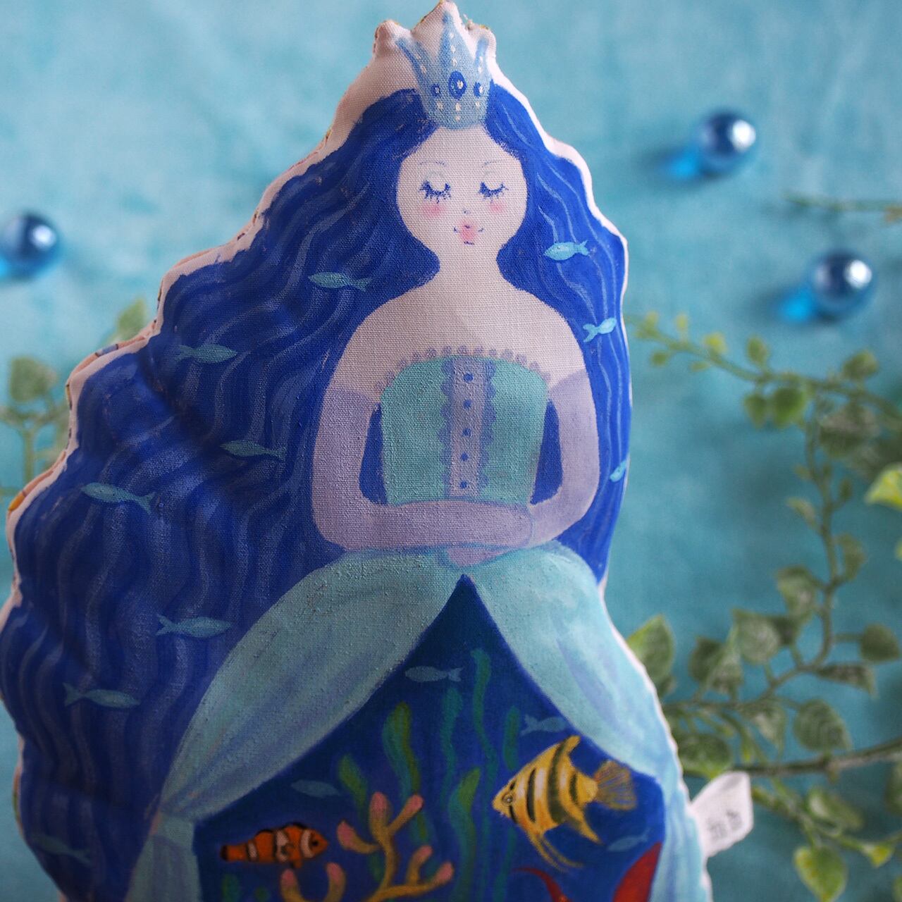 髪にもたくさんの魚たちが泳いでいます。