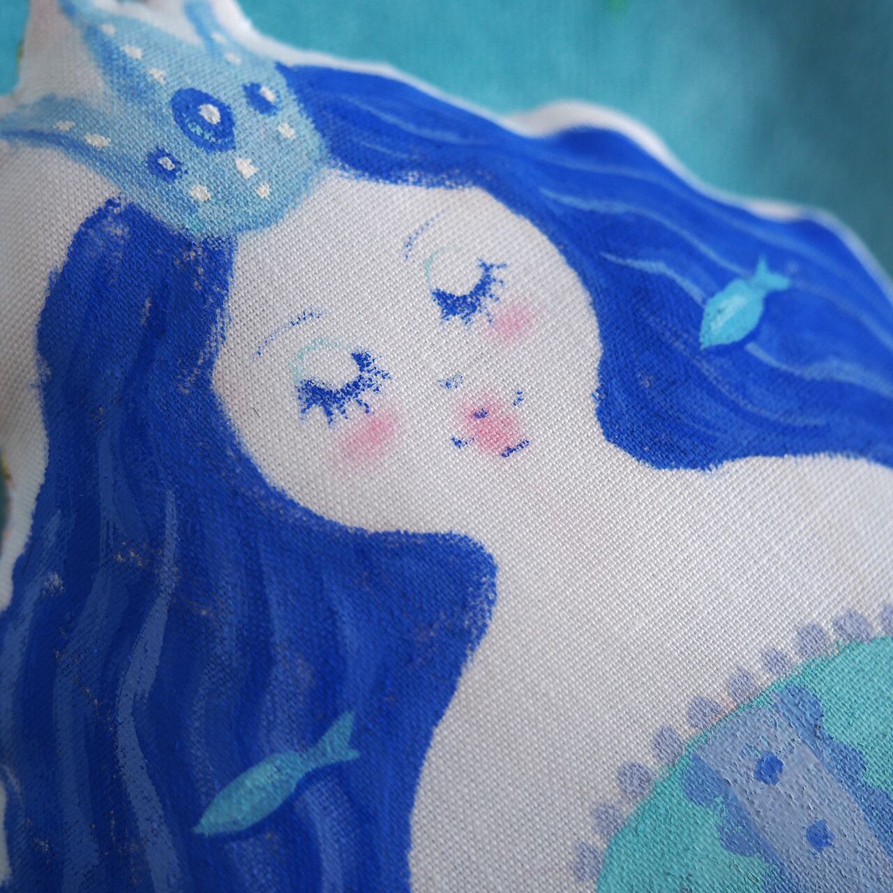 人形の形のキャンバスに絵を描くような気持ちで、心を込めて制作しています。