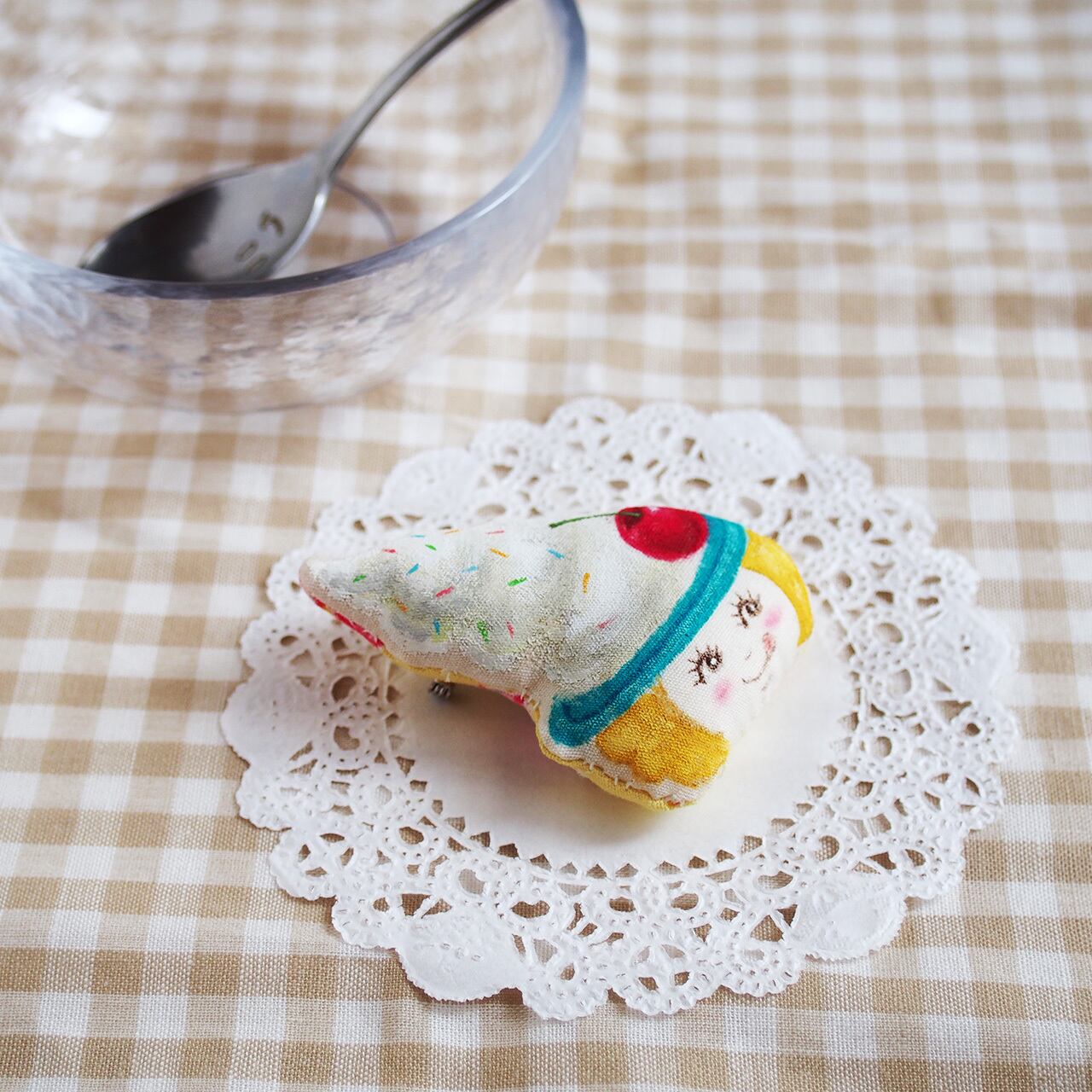 ソフトクリーム帽子のお顔ブローチ