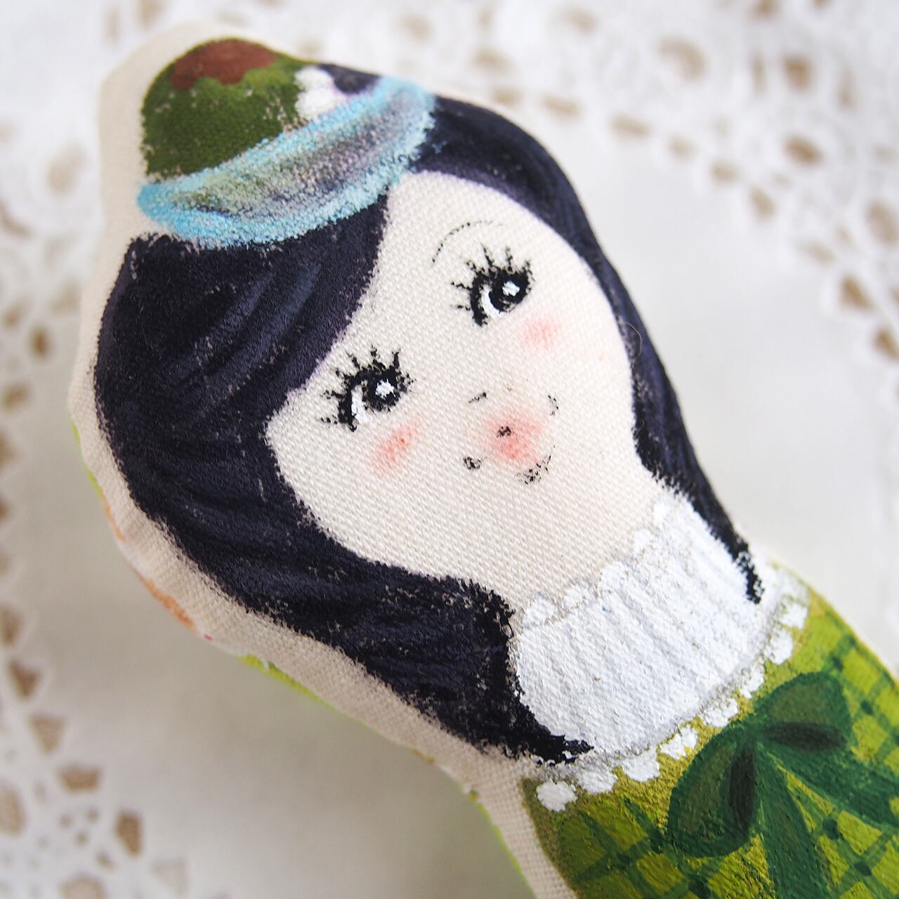 抹茶アイスの帽子をかぶった女の子のブローチです。