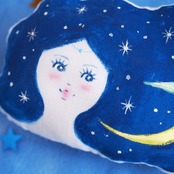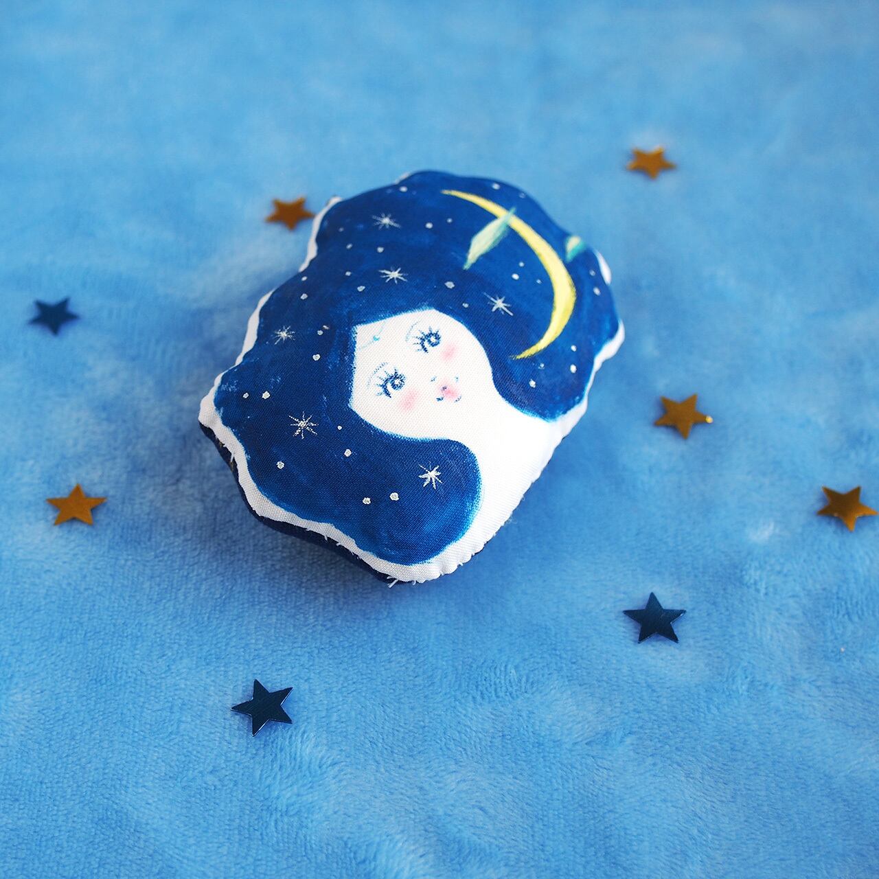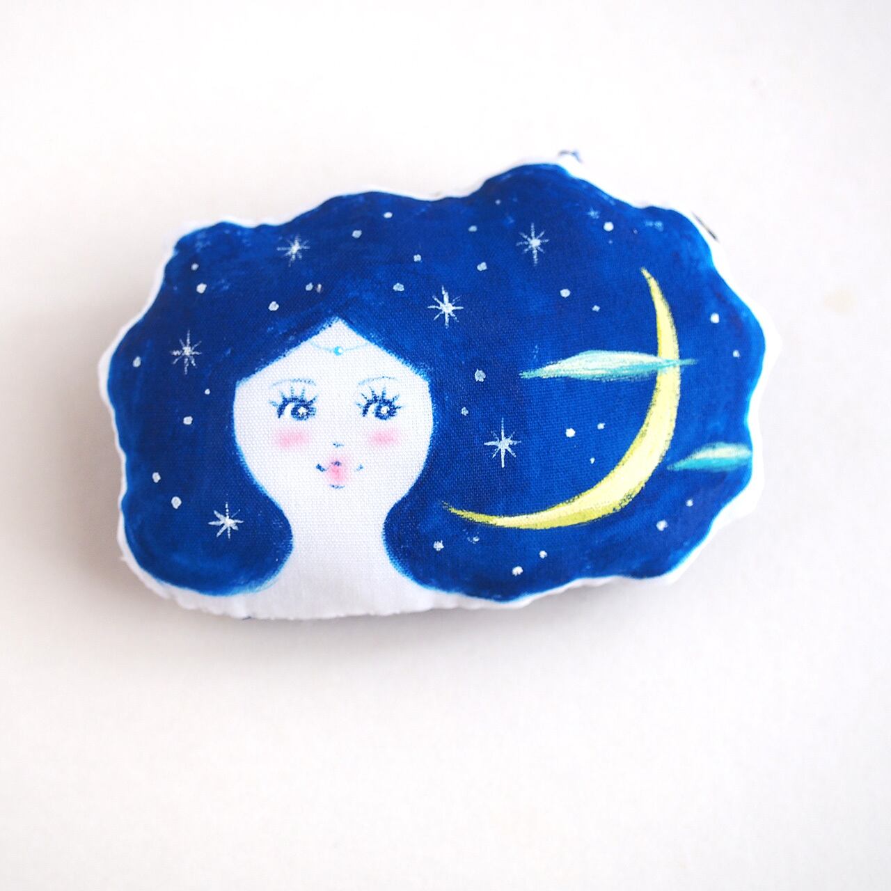 夜空の髪に、三日月が浮かんでいる女の子の ブローチです。