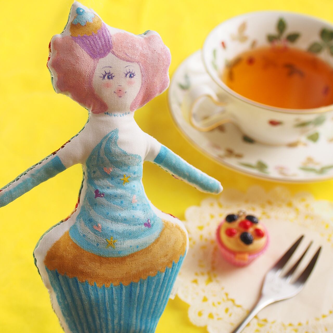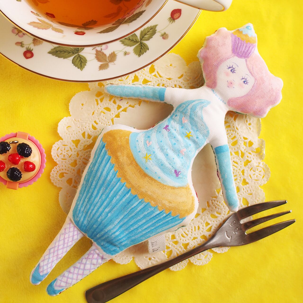 淡いブルーのクリームがたっぷり乗ったカップケーキです。