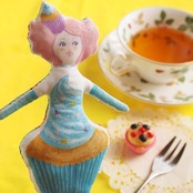 白、またはキナリの布を手縫いし、綿を入れて人形の形を作り、そこへ直接アクリル絵の具で着色しています。
