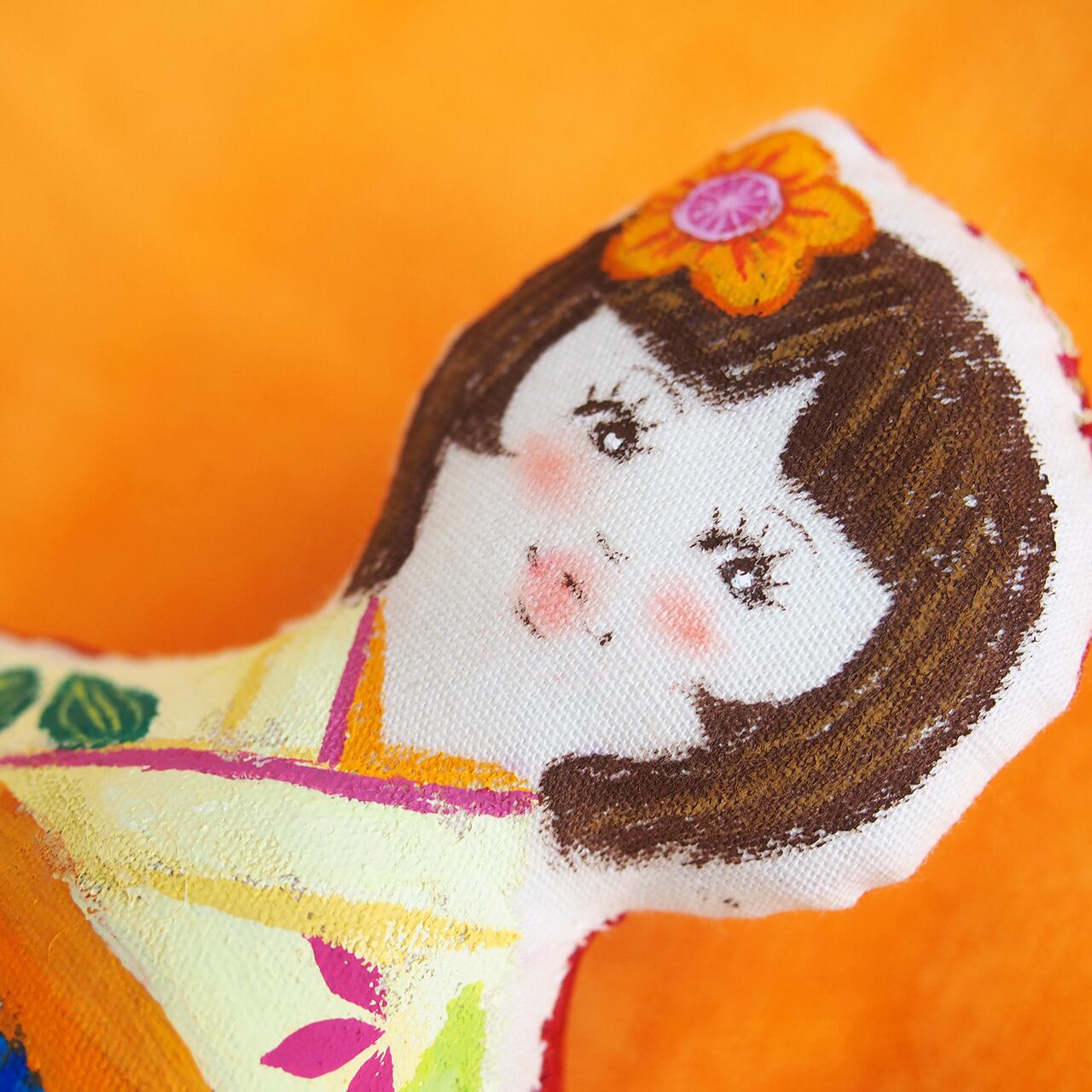 人形の形のキャンバスに絵を描くような気持ちで、心を込めて制作しています。
