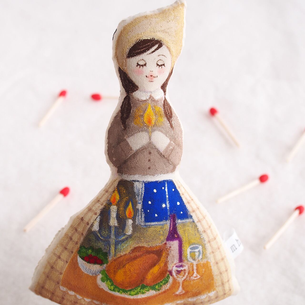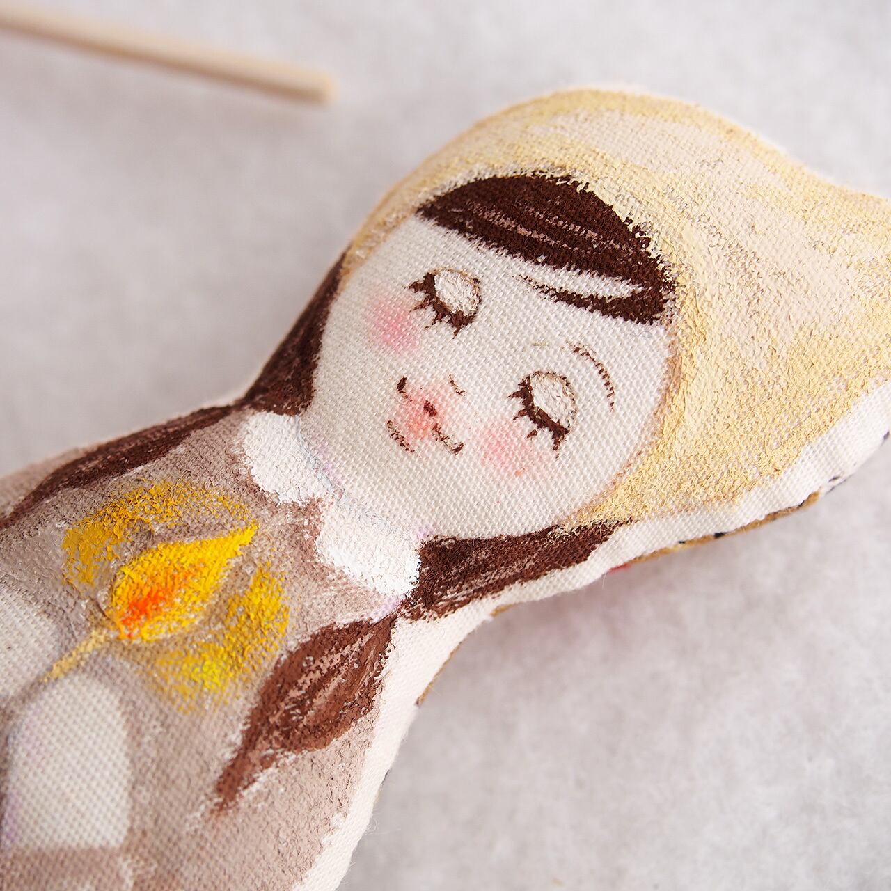 人形の形のキャンバスに絵を描くような気持ちで、心を込めて制作しています。