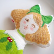白、またはキナリの布を手縫いし、綿を入れて人形の形を作り、そこへ直接アクリル絵の具で着色しています。
